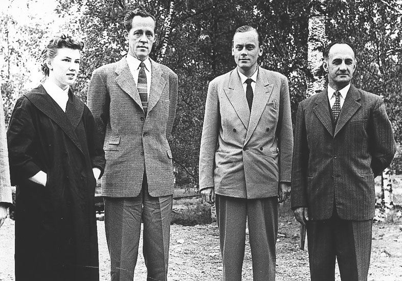 Lärarna: fröken Marianne Berg, hr Hans Simonsson, hr Stig Hofman samt yrkeskolornas ordf. Sigge Lindström.