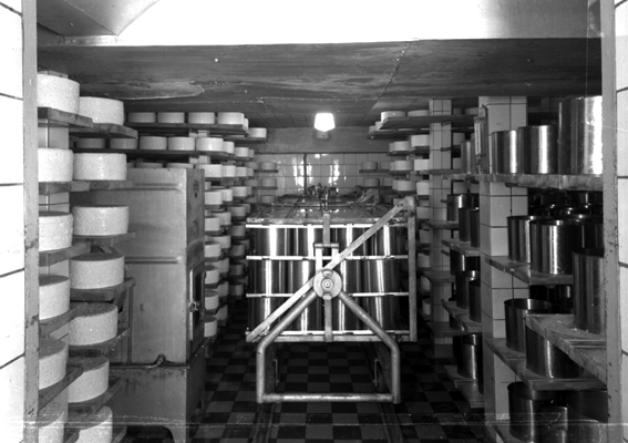 Titel: Lokal för lagring av ostar. Fotografens ant: Väse mejeri (ostfabriken).