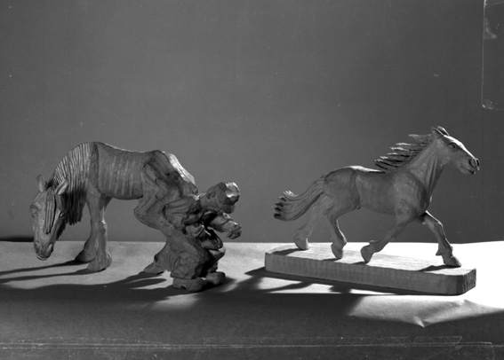 Enligt Döderhultarmuseet, Kulturhuset, Oskarshamn, är dessa skulpturer förfalskade Döderhultarmotiv. Man har här försökt efterlikna "ottenbyare" och "springande häst " eller "fullblod".