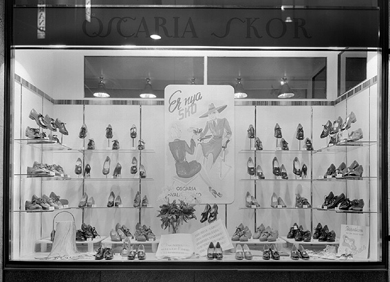 Skor, samt reklam i skyltfönster tillhörande Oscaria.