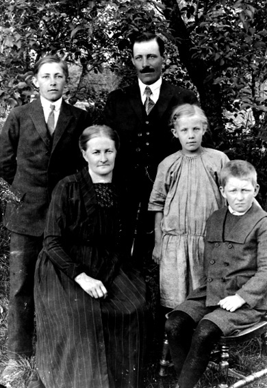 Man och kvinna med tre barn.