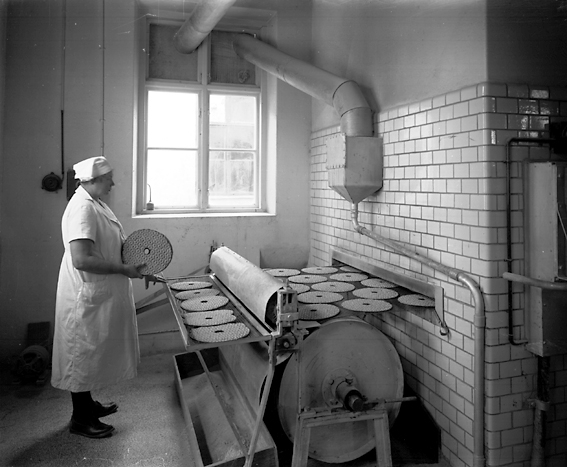 Titel: Karlstads Spisbrödsfabrik, senare KF:s bageri, på Långgatan 31-33 i kvarteret Höder. Bilden tagen 1935 samma år som KF tog över verksamheten.