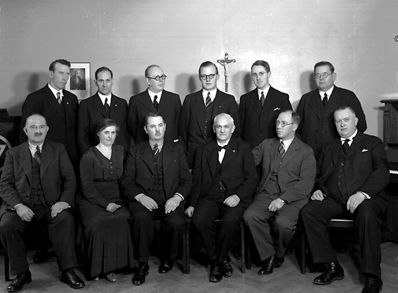 Fotografens ant: Fabrikör Boman. Grupp tagen på KFUM. 1936.