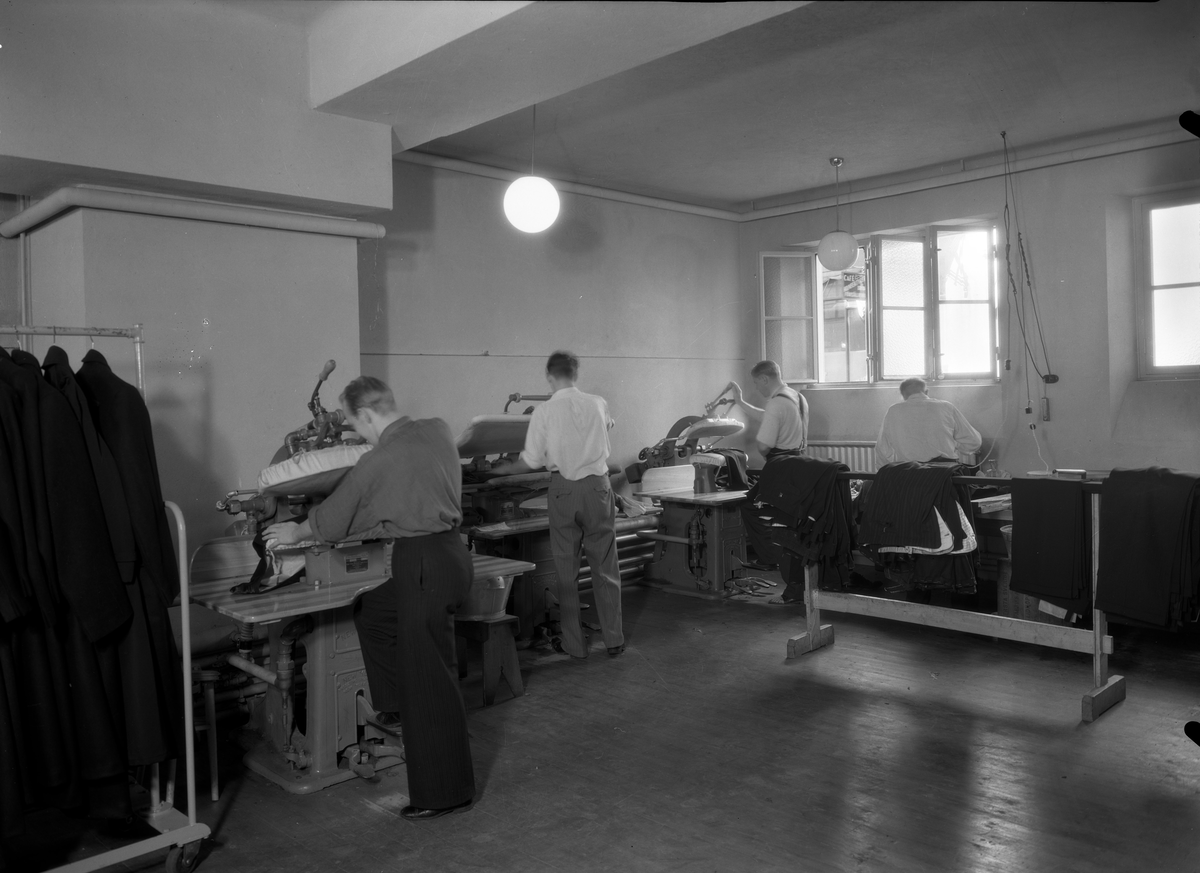 A-B. Bergsson och söner; interiör av fabriken. Män i arbete vid pressmaskiner.