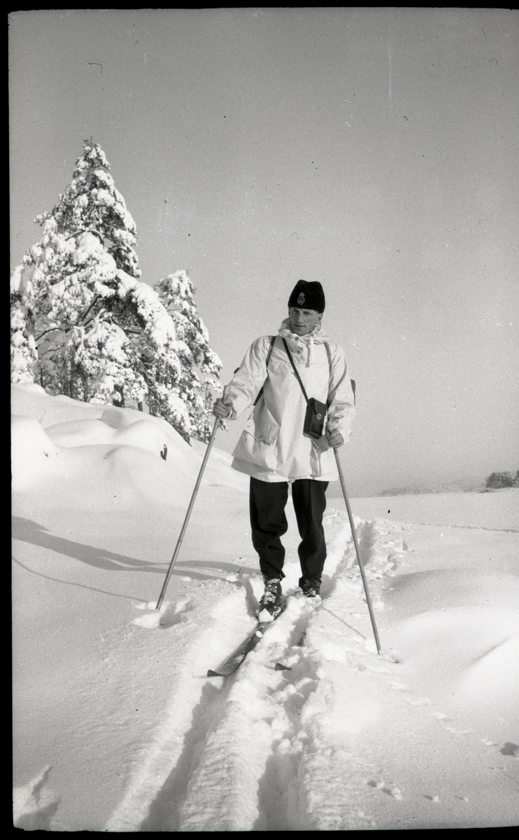 Harald Sundling på skidor. Iklädd tullstjänsten mössa.