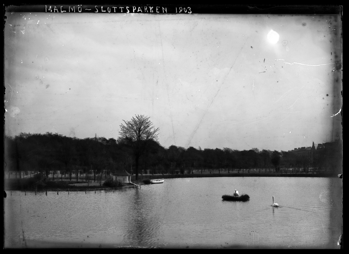 På kuvertet står följande information sammanställd vid museets första genomgång av materialet: Malmö. Slottsparken