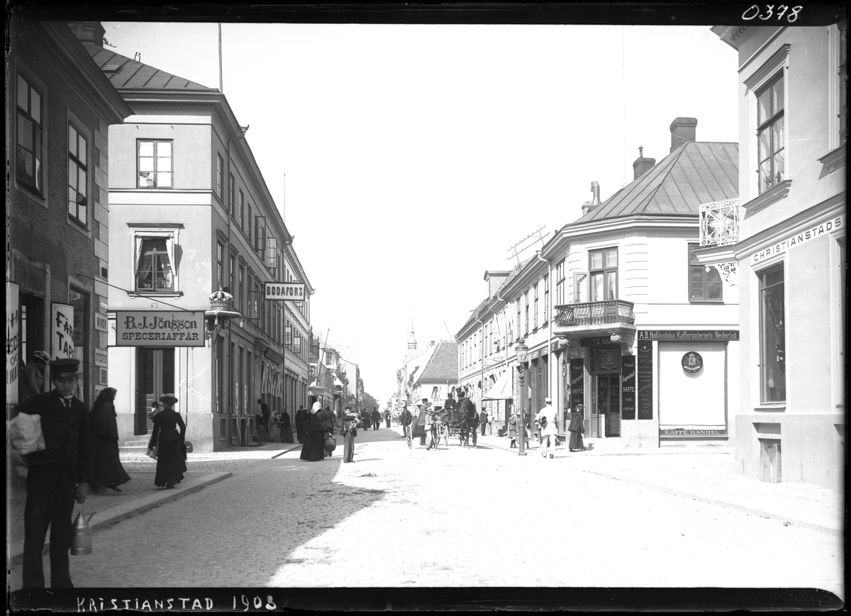 På kuvertet står följande information sammanställd vid museets första genomgång av materialet: Kristiandstad, affärer.