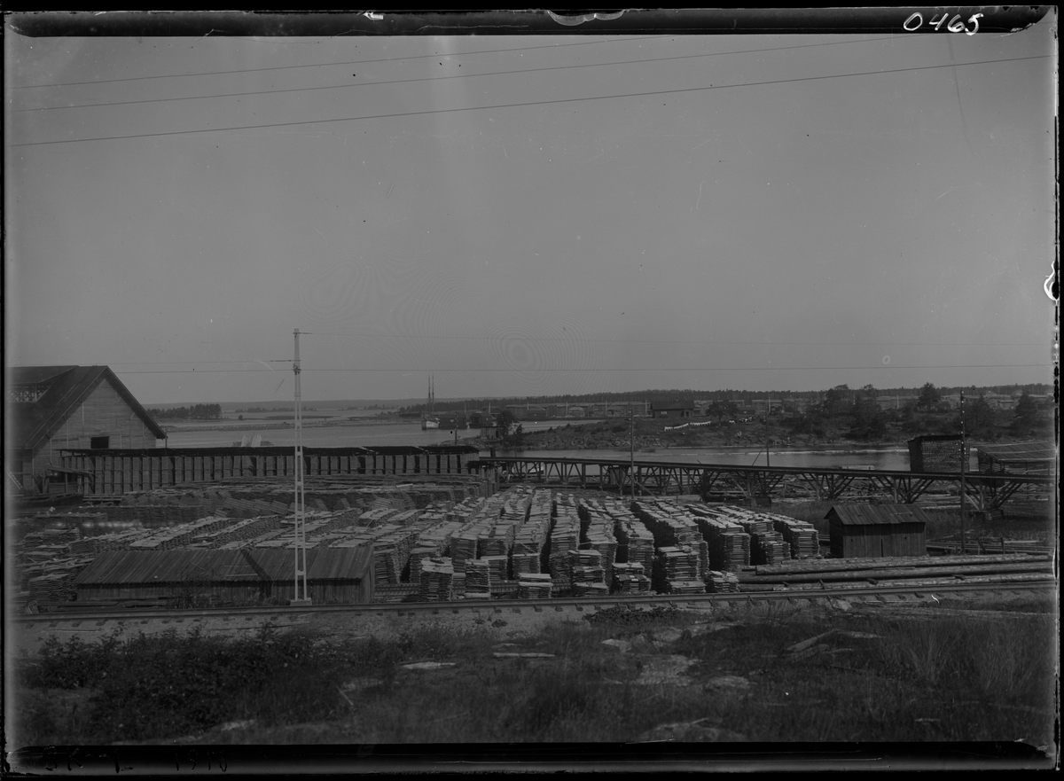 På kuvertet står följande information sammanställd vid museets första genomgång av materialet: Utsikt över timmer och öarna.