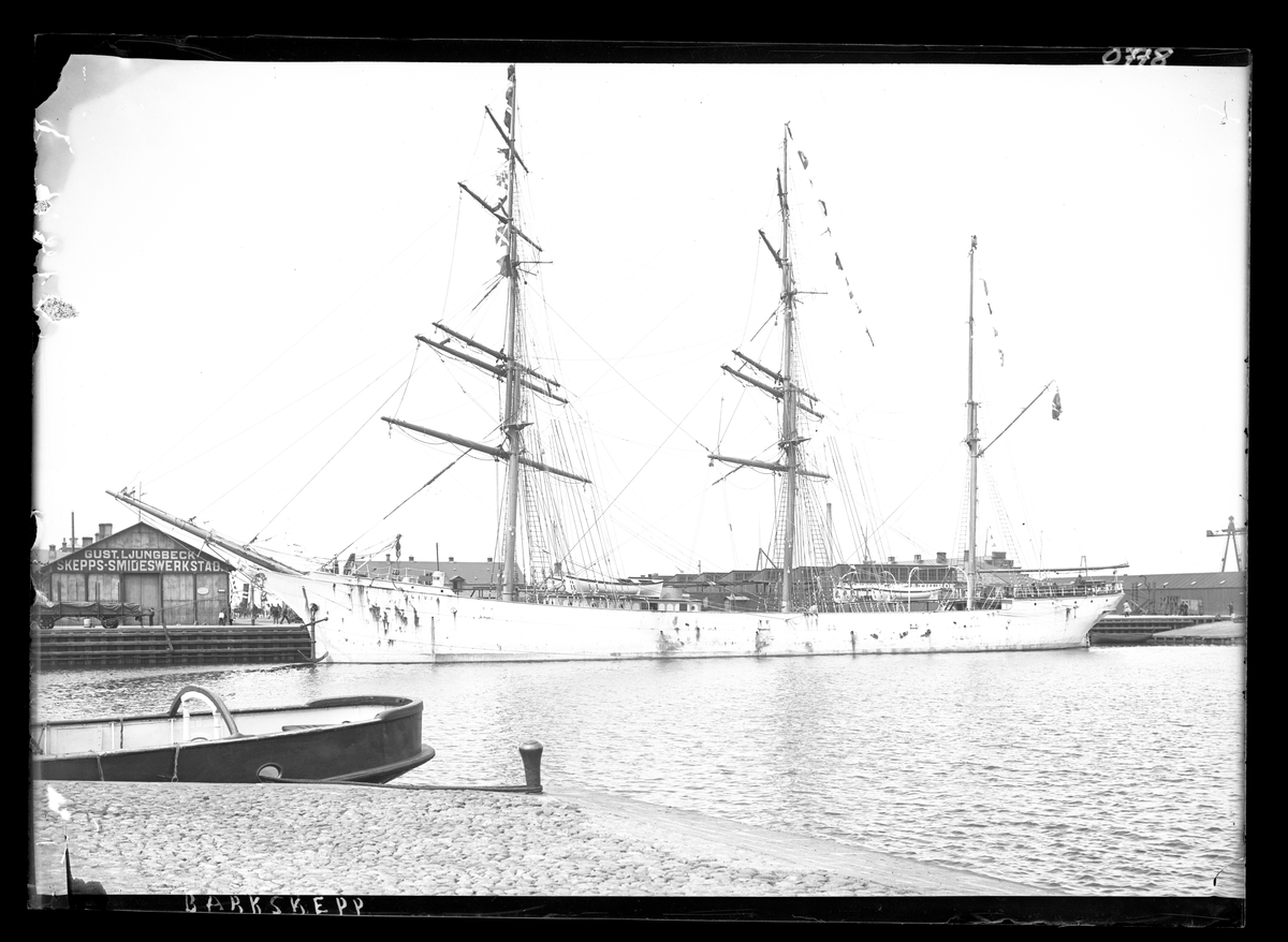 På kuvertet står följande information sammanställd vid museets första genomgång av materialet: Gust. Ljungbeck. Skepps & smidesverkstad. Barkskepp.