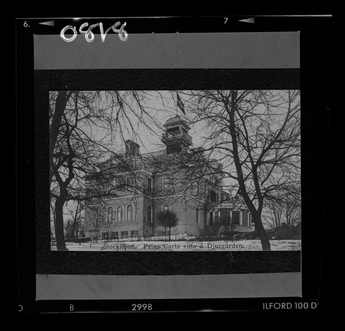 På kuvertet står följande information sammanställd vid museets första genomgång av materialet: Prins Carls villa, Djurgården