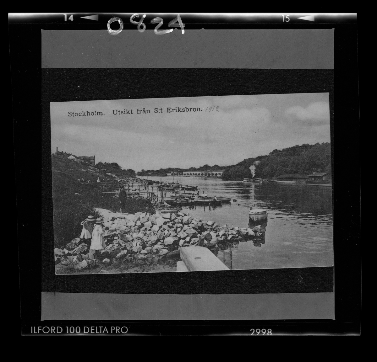 På kuvertet står följande information sammanställd vid museets första genomgång av materialet: Utsikt från S:t Eriksbron.