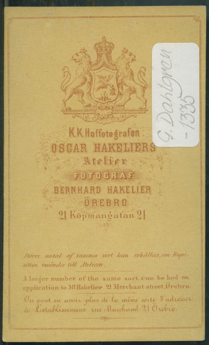 På kuvertet står följande information sammanställd vid museets första genomgång av materialet: Porträtt Dam.
