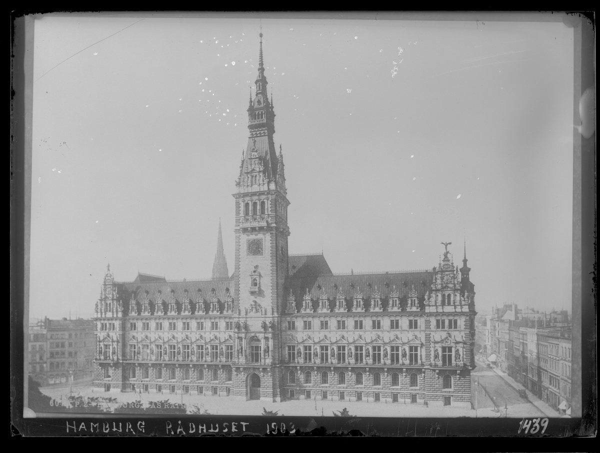 På kuvertet står följande information sammanställd vid museets första genomgång av materialet: Rådhuset.