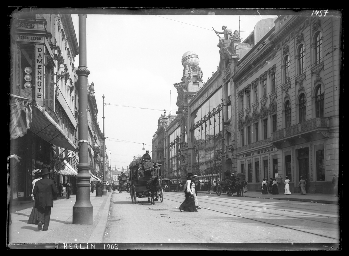 På kuvertet står följande information sammanställd vid museets första genomgång av materialet: Byggnader, Hästdroska, Affärer. Laipsiger Strass
