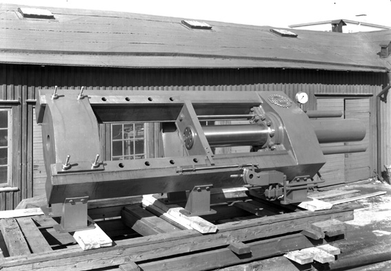 Titel: Maskin. Fotografens ant:AB. C.J. Wennbergs Mek. Verkstad. Som ung smedlärling flyttade Carl Johan Wennberg år 1864 till Karlstad. Några år senare startade han en mindre verkstad för reparationer av redskap, vagnar och båtar och därmed lades grunden till företaget, AB C.J Wennbergs Mekaniska Verkstad. På 1890-talet uppfördes ett eget gjuteri i stadsdelen Viken, beläget intill Mariebergsviken. Källa: Nyblom-Svanqvist, Näringsliv i Värmland, 1945