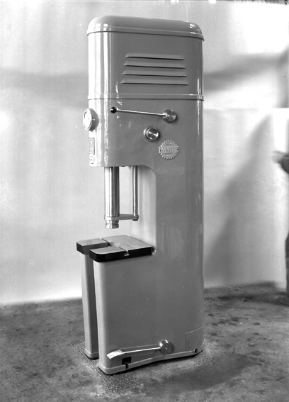 Titel: Press. Fotografens ant:AB. C.J. Wennbergs Mek. Verkstad. Som ung smedlärling flyttade Carl Johan Wennberg år 1864 till Karlstad. Några år senare startade han en mindre verkstad för reparationer av redskap, vagnar och båtar och därmed lades grunden till företaget, AB C.J Wennbergs Mekaniska Verkstad. På 1890-talet uppfördes ett eget gjuteri i stadsdelen Viken, beläget intill Mariebergsviken. Källa: Nyblom-Svanqvist, Näringsliv i Värmland, 1945