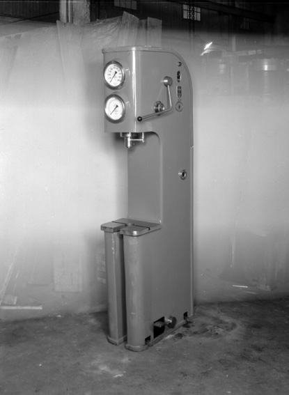 Titel: Press. Fotografens ant:AB. C.J. Wennbergs Mek. Verkstad. Som ung smedlärling flyttade Carl Johan Wennberg år 1864 till Karlstad. Några år senare startade han en mindre verkstad för reparationer av redskap, vagnar och båtar och därmed lades grunden till företaget, AB C.J Wennbergs Mekaniska Verkstad. På 1890-talet uppfördes ett eget gjuteri i stadsdelen Viken, beläget intill Mariebergsviken. Källa: Nyblom-Svanqvist, Näringsliv i Värmland, 1945