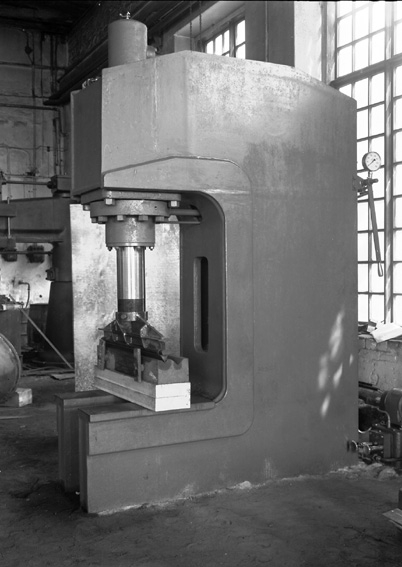 Titel: Press. Fotografens ant:AB. C.J. Wennbergs Mek. Verkstad. Som ung smedlärling flyttade Carl Johan Wennberg år 1864 till Karlstad. Några år senare startade han en mindre verkstad för reparationer av redskap, vagnar och båtar och därmed lades grunden till företaget, AB C.J Wennbergs Mekaniska Verkstad. På 1890-talet uppfördes ett eget gjuteri i stadsdelen Viken, beläget intill Mariebergsviken. Källa: Nyblom-Svanqvist, Näringsliv i Värmland, 1945