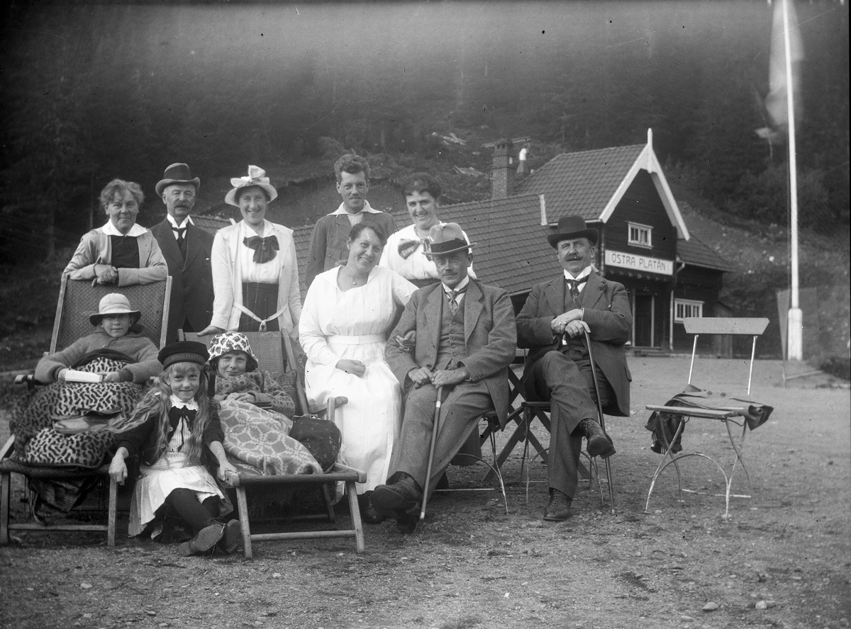 På negativkuvertet står följande text: Herr Klein. Ext. Östra Platån, hus, grupp.