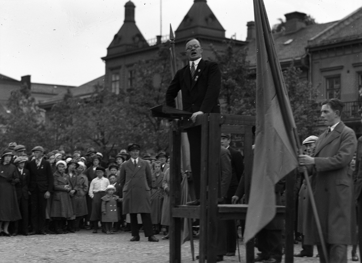 Titel: Frälsningsarmén har en sammankomst på torget 1934.