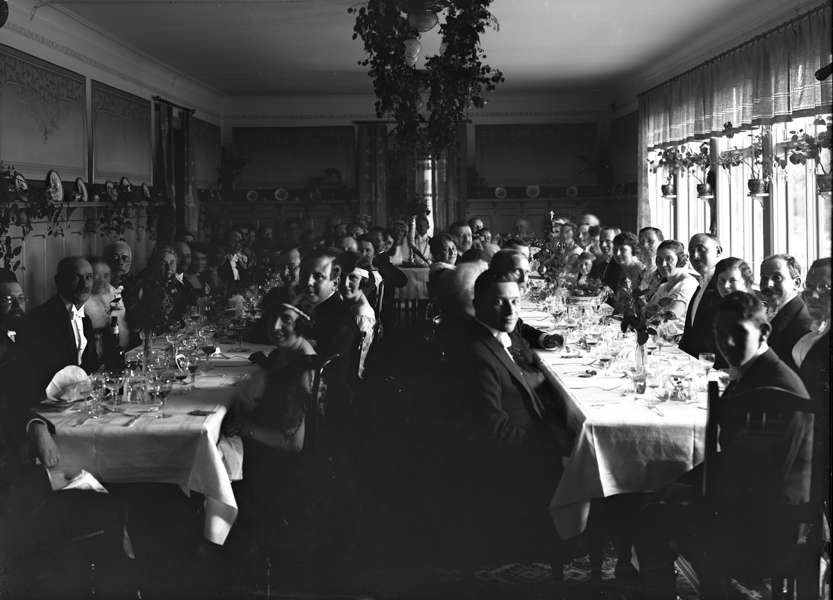 Bröllopsfest, Grosshandlare Goldman med fru, troligen Manne Goldman och Laila Goldman.