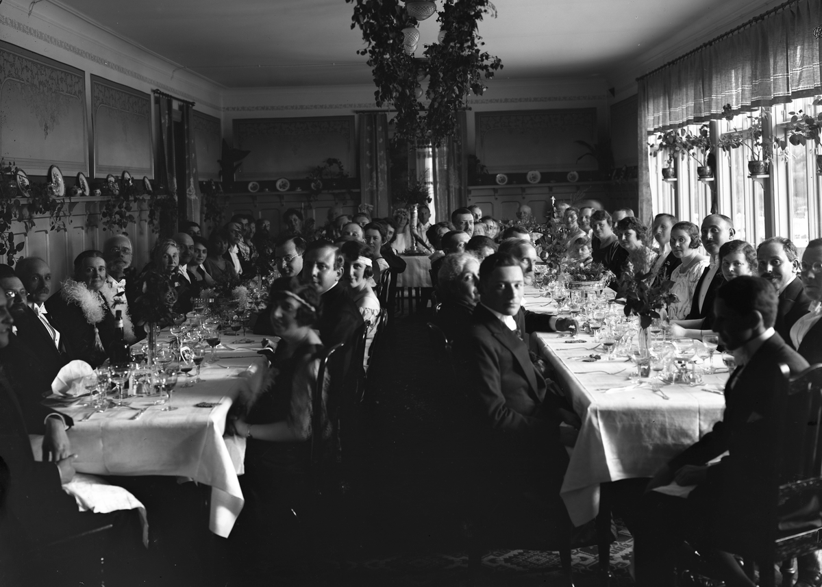 Bröllopsfest, Grosshandlare Goldman med fru, troligen Manne Goldman och Laila Goldman.