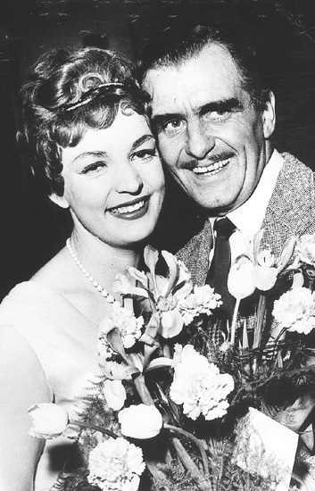 Marianne Andersson som Eliza Doolittle och Gösta Kjellertz som Henry Higgins i "My Fair Lady" efter blomsterhyllningen på Torsbyscenen.