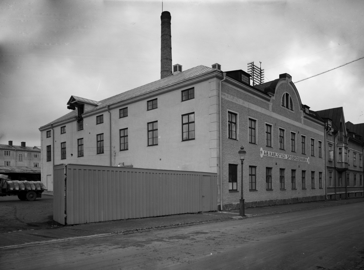 Karlstads Spisbrödsfabrik, senare KF:s bageri, på Långgatan 31-33 i kvarteret Höder. Bilden tagen 1935 samma år som KF tog över verksamheten.