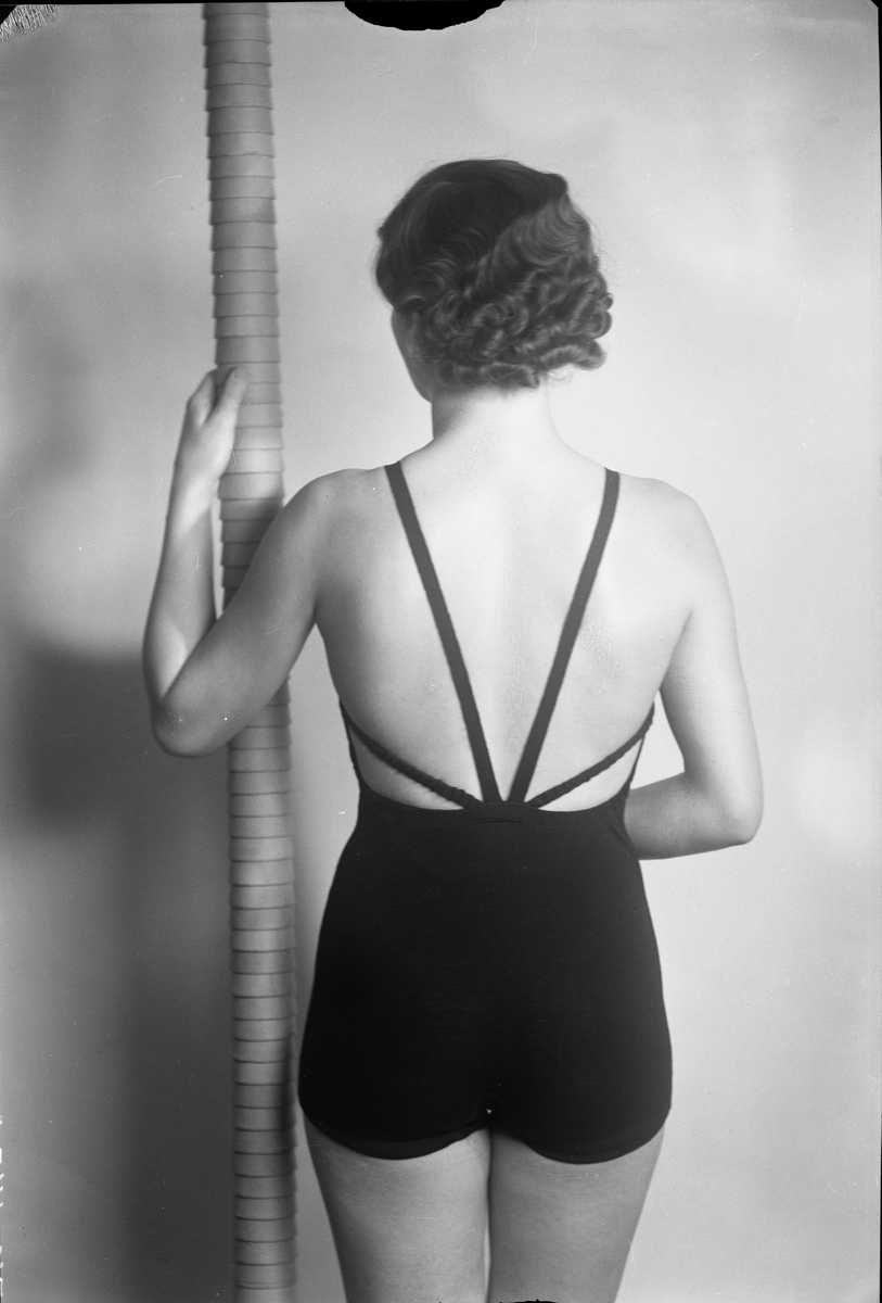 Modell i baddräkt, förmodligen tillverkad i ylle.