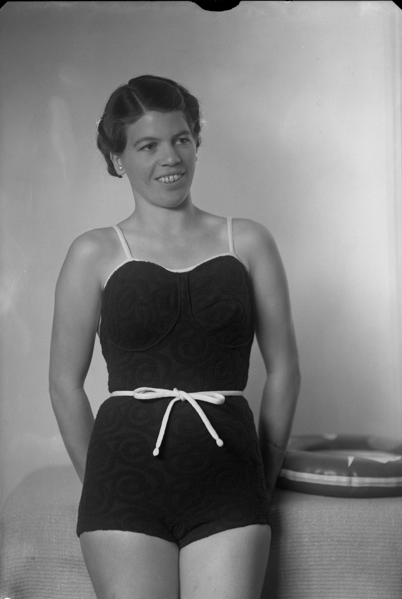 Modell med baddräkt, förmodligen tillverkad i ylle.