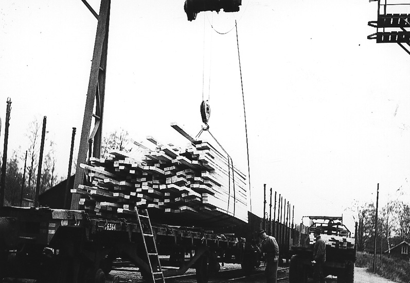 Omlastning vid Torsby Järnvägsstation.