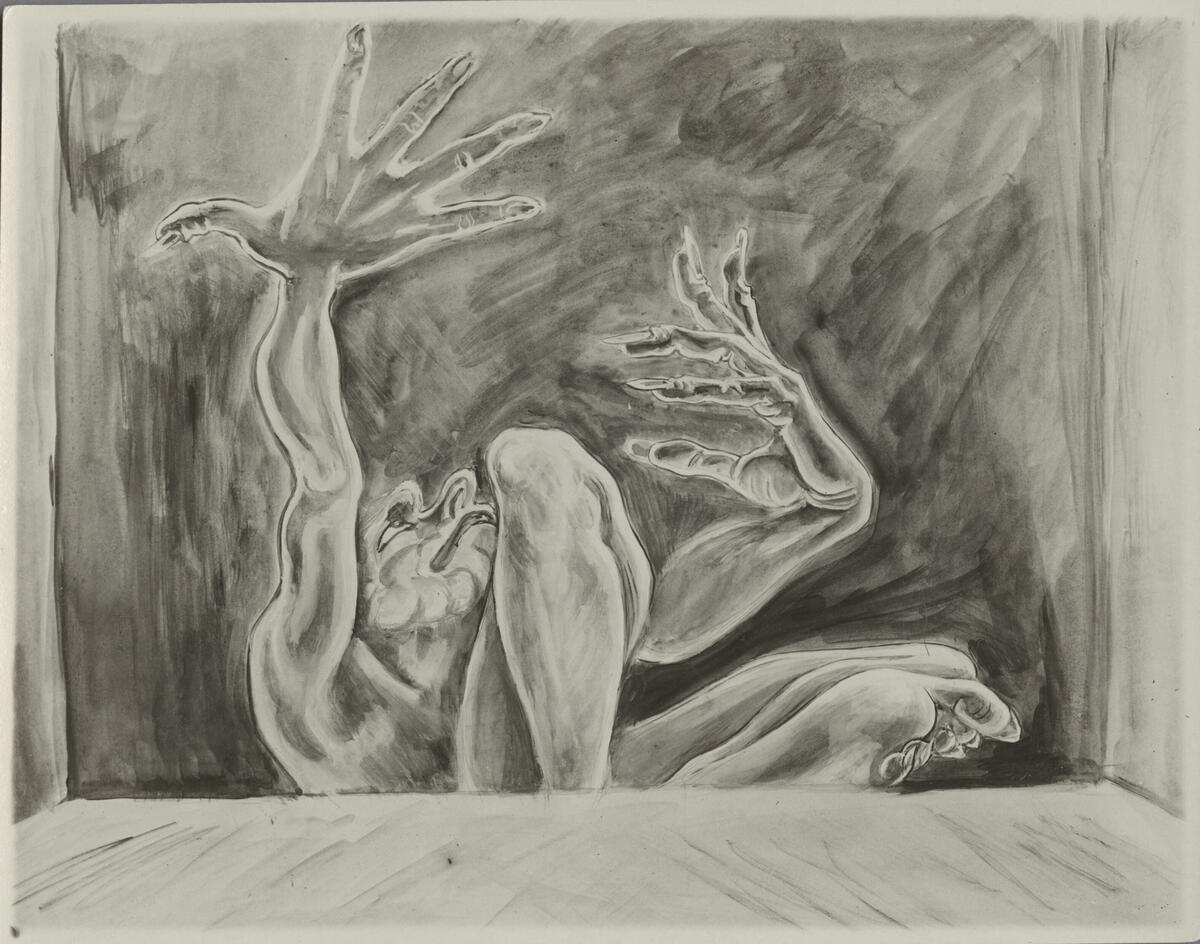 Titel: Fotografi av Nils Dardels dekorationsskiss till uppsättningen "Dårhuset".