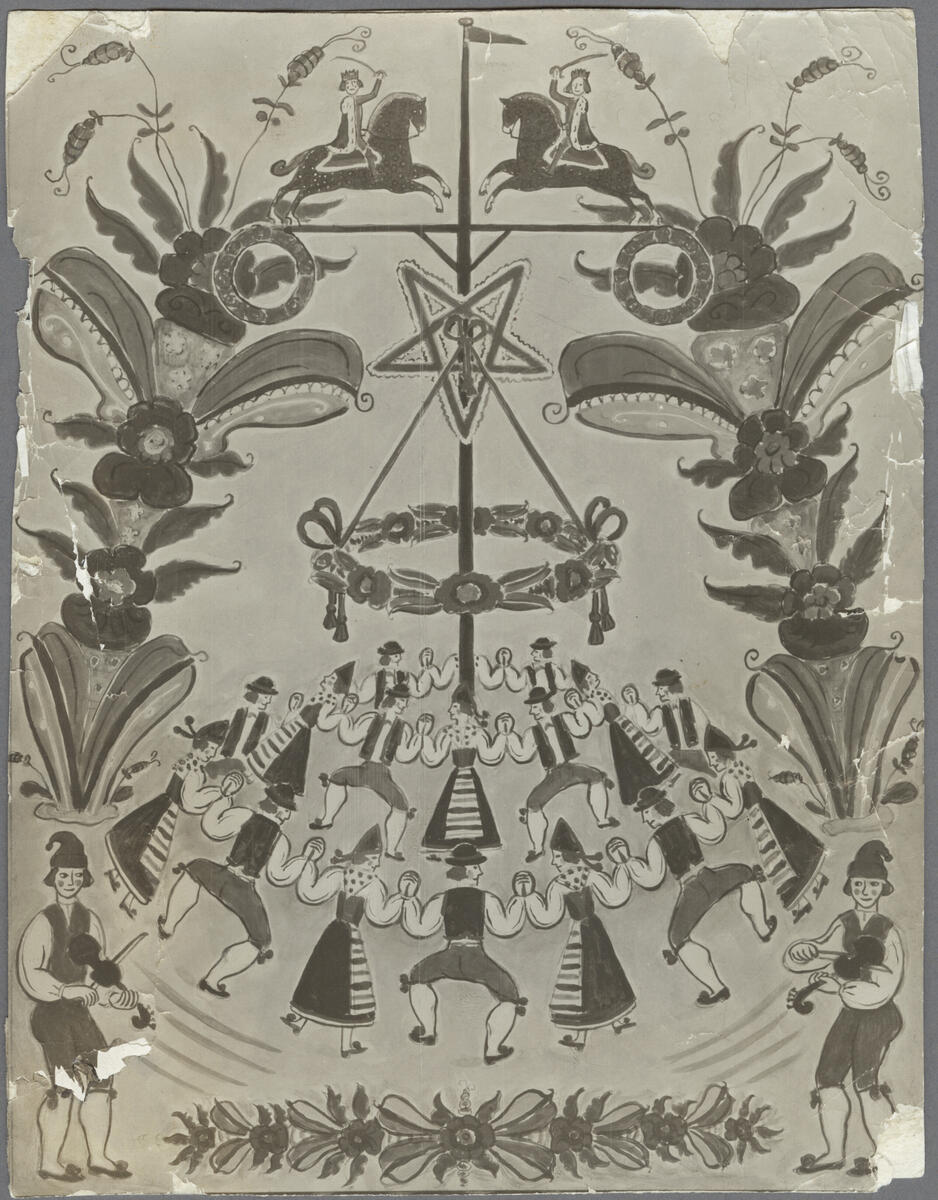 Titel: Fotografi av Nils Dardels ridåskiss till uppsättningen "Midsommarvaka".