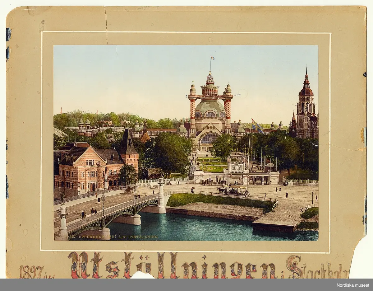 Allmänna Konst och Industriutställningen i Stockholm år 1897. Till höger Nordiska museet under byggnation.