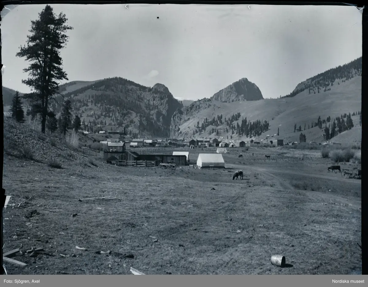 Vy över bergigt landskap och bebyggelse. Colorado, USA.