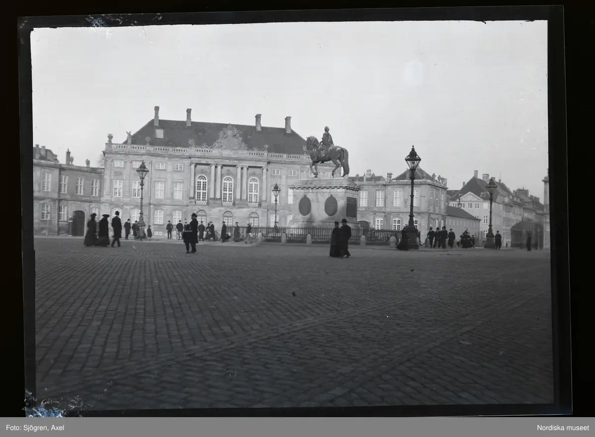 Flanörer på torget framför Amalienborg, Köpenhamn, Danmark.