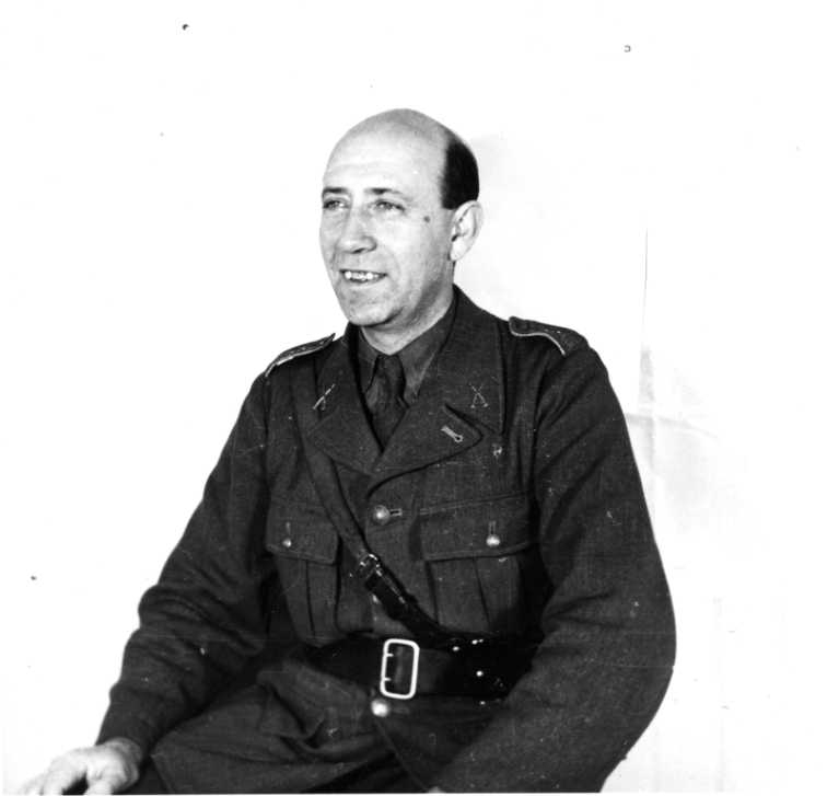 En tunnhårig sittande man i militär uniform, möjligen ryttmästare Leo Sager.
