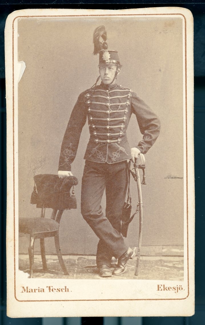 Kabinettsfotografi: Edvard (sannolikt) Aschan i helfigur i uniform.