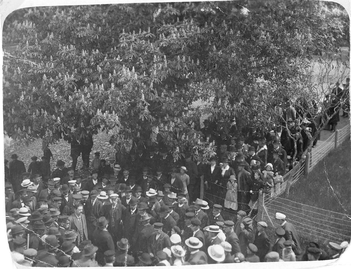 En folksamling runt en man på Brahegatan i Gränna.