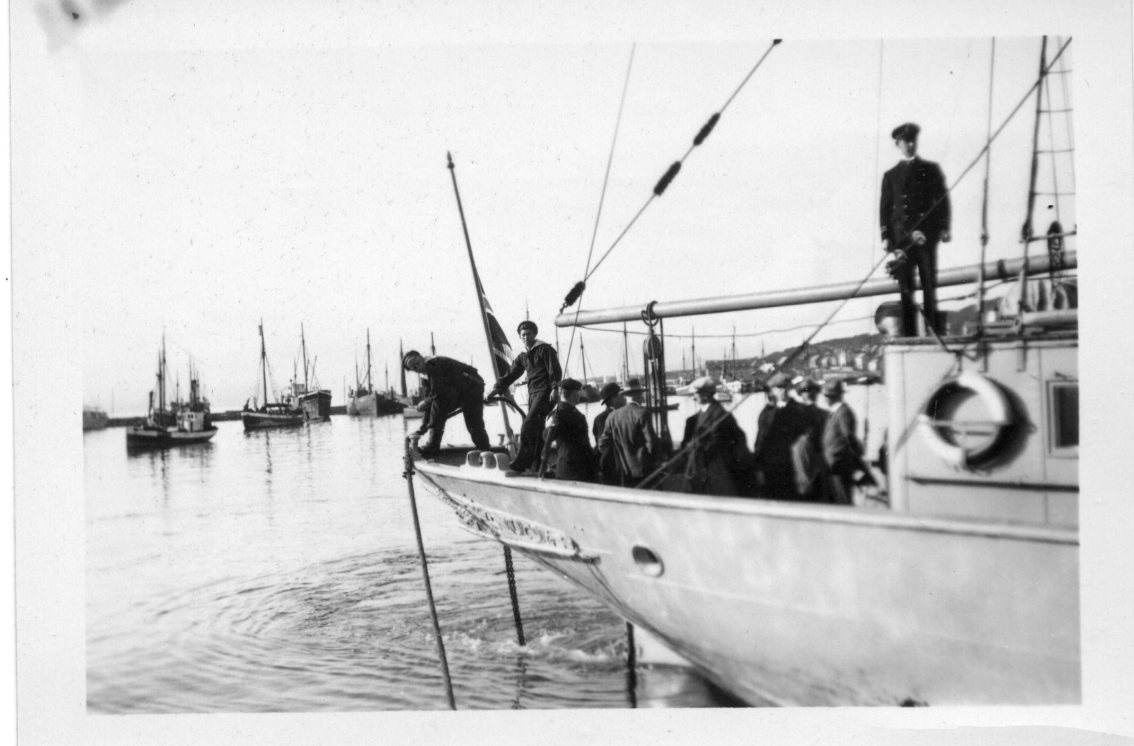 Den så kallade undersökningskommissionen samlade ombord på norska marinens Michael Sars i Tromsö hamn den 2 sept 1930.