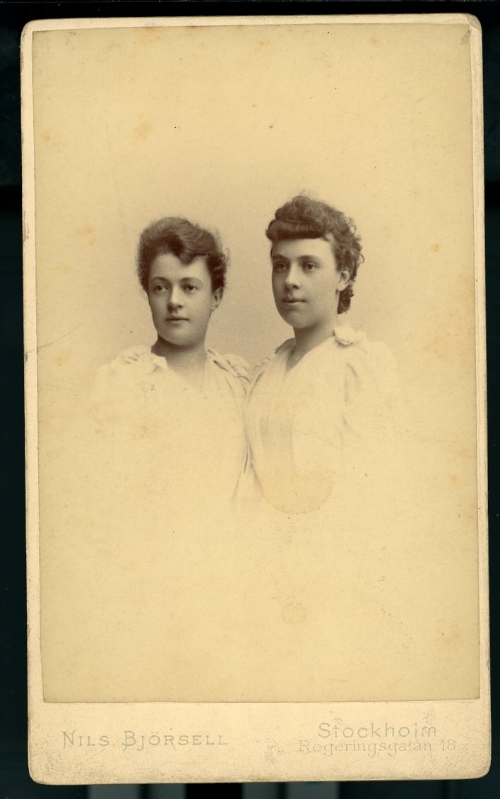 Kabinettsfotografi: "Fr Thiebaut", bröstbild av två unga kvinnor i vita plagg.