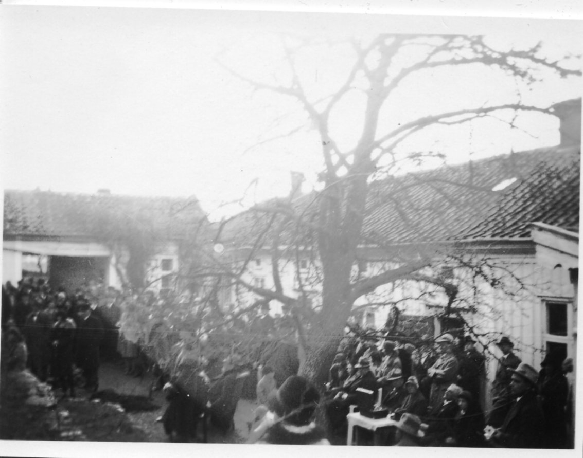 En folksamling på gården till Franckska gården i samband med invigning av Andréemuseet i samma fastighet.