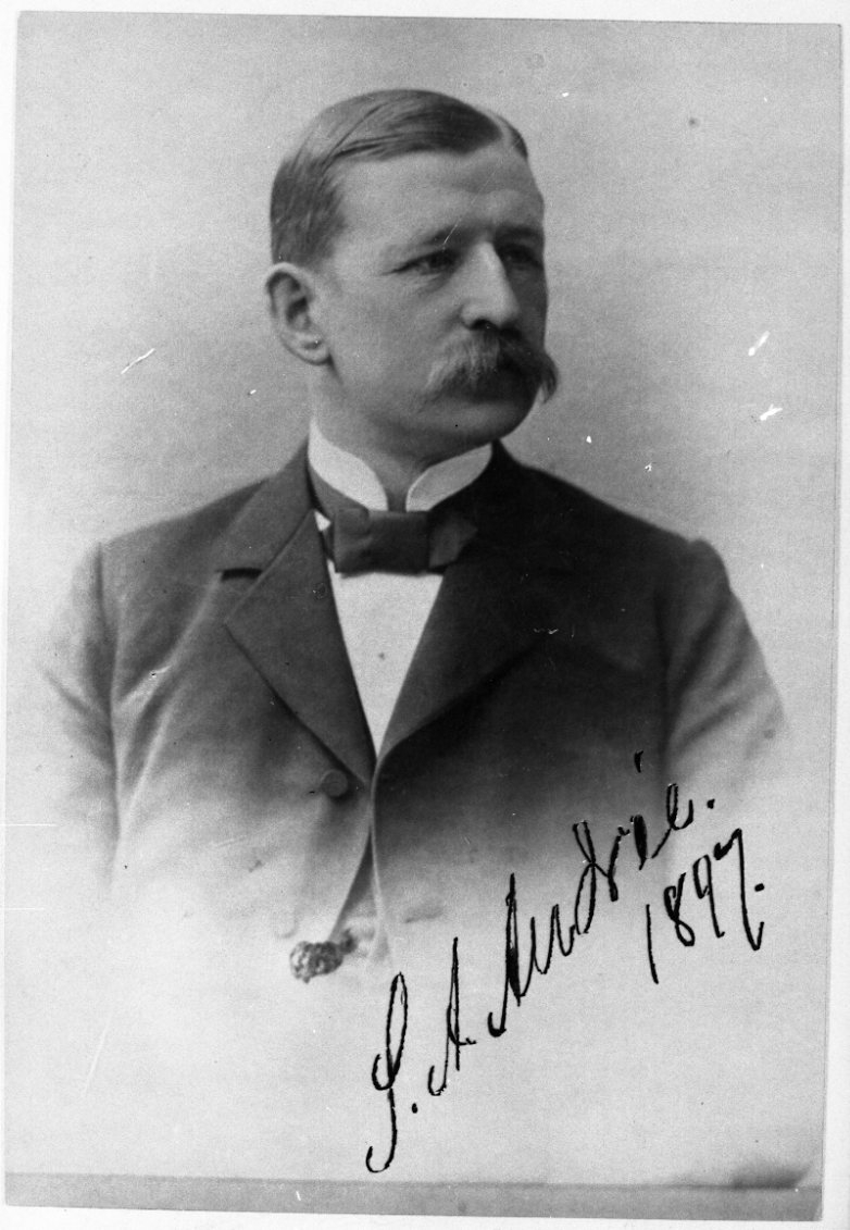 Porträttbild (negativ) av S A Andrée, med signatur: "S. A. Andrée. 1897."