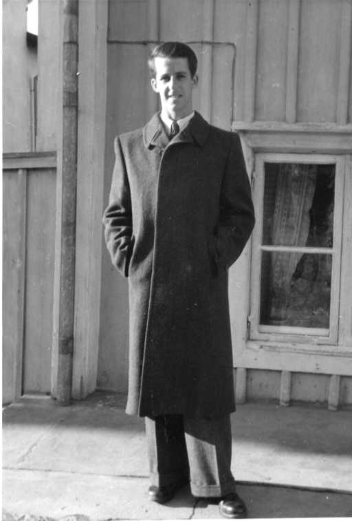 En man i mörk rock, troligen på Brahegatan i Gränna