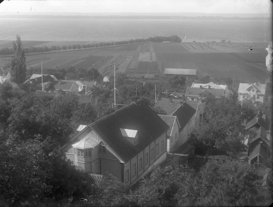 Vy över Gränna från Grännaberget med missionshuset i förgrunden.