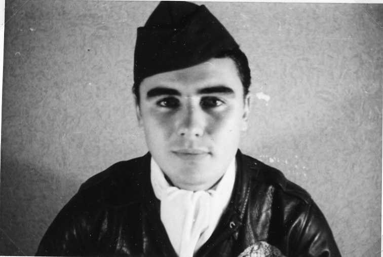 Titel: Porträtt av man i flygaruniform - skinnjacka