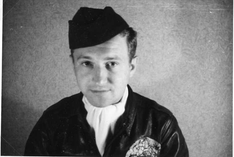 Titel: Porträtt av man i flygaruniform - skinnjacka