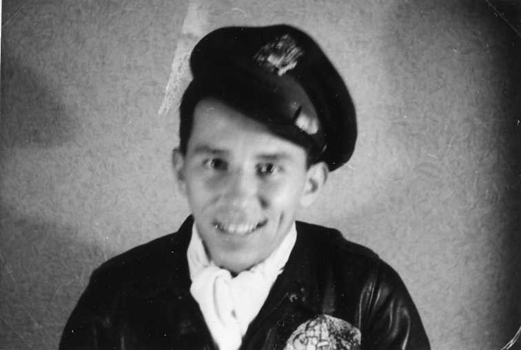 Titel: Porträtt av man i flygaruniform - skinnjacka