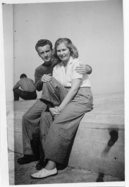 Okänd amerikansk bombflygare med okänd kvinna tätt intill, möjligen nere vid Gränna hamn.