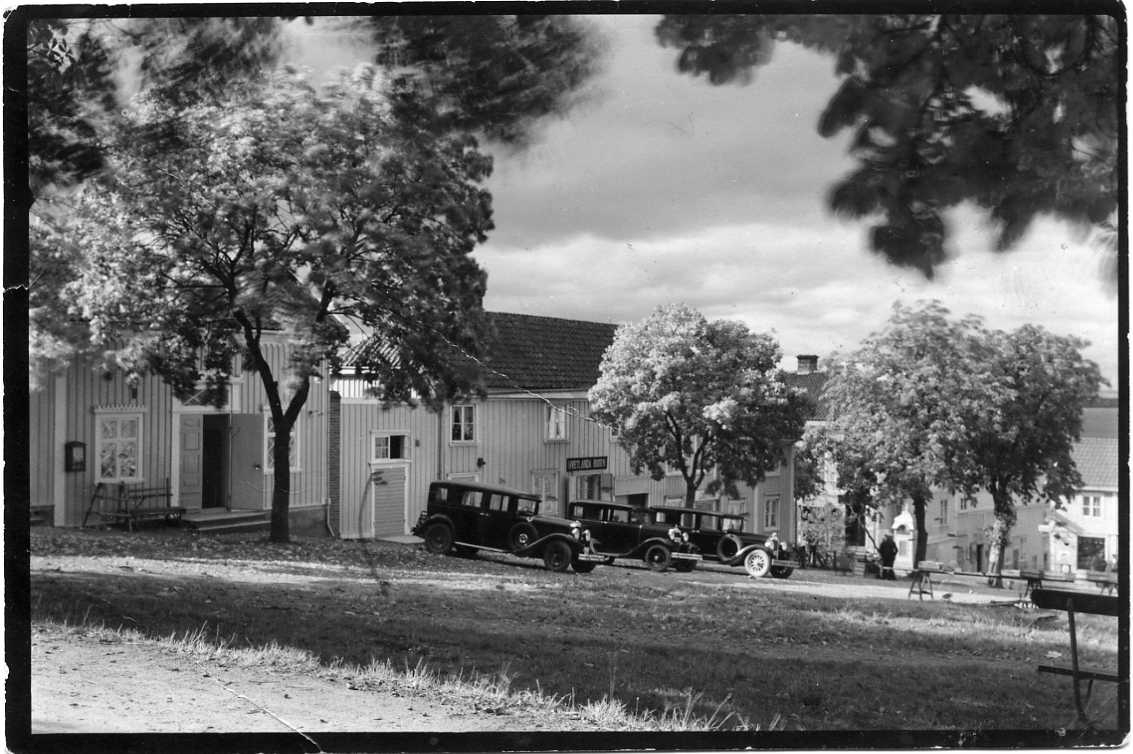 Södra delen av Gränna torg med droskbilar och "Hvetlanda Boden".
